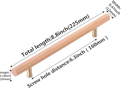 SYZOW 6 Pezzi mobili da cucina Maniglie per mobili in legno -maniglie a T per mobili Maniglie Cassetti Ottone Maniglie per Mobili da centro del foro 224mm (Legno di noce)
