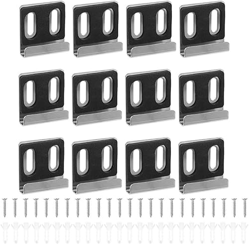 Set di 12 clip per specchio in metallo, ampio canale, supporto per specchio con viti, cuscinetti in gomma, clip per specchio, hardware robusto per montaggio senza cornice, piastrelle da parete