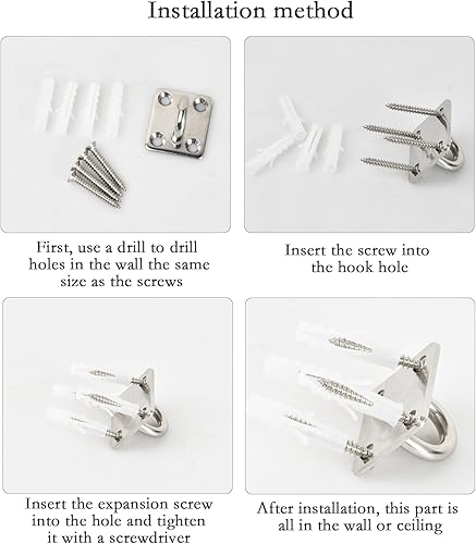 6 Pezzi Gancio per Soffitto in Acciaio Inossidabile, Chiusura a Vite per Occhielli Rotondi M5, Piastra con Occhielli per Appendere Piante in Vaso, luci, Sedie Sospese, con Viti e Tubo di Espansione