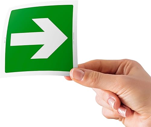 ADESIVI FRECCE USCITA EMERGENZA 6 pz. - da 10 cm - Frecce Guida verso Uscita di Sicurezza, orientabili in ogni direzione, in PVC morbido, Impermeabili, anti UV, mis. 10x10 cm