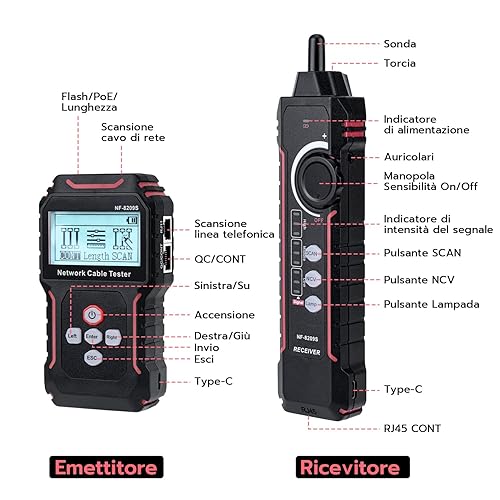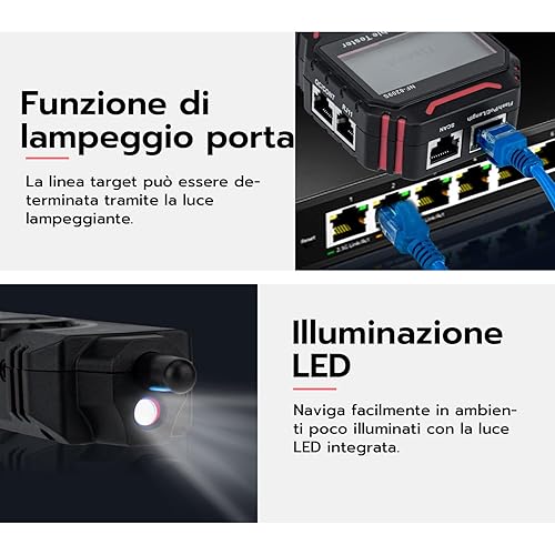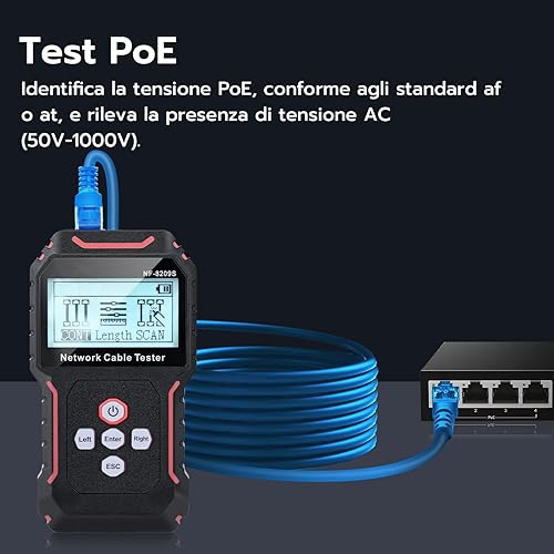 Mcbazel Tester per Cavi di Rete con PoE e NCV, Misurazione della Lunghezza del Cavo, Porta Flash, Rilevatore di Line