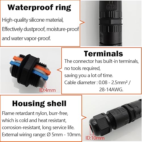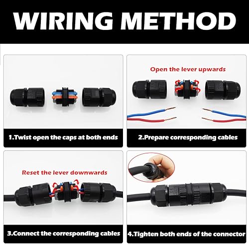 Connettore Stagno da Esterno, CTRICALVER 2 Poli Giunto Elettrico Impermeabile, Connettori Elettrici IP66 per Diametro del Cavo Ø5-10mm, Scatola Connettori Impermeabile (2 Pacchi)
