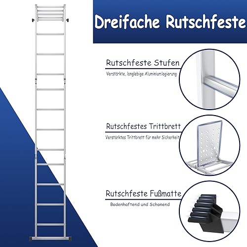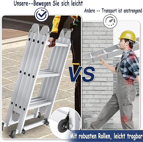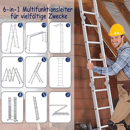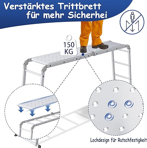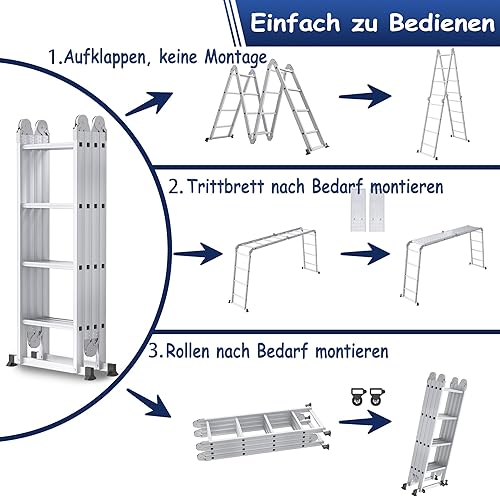 Scala multiuso 6 in 1, in alluminio, 470 cm, con piattaforma fino a 150 kg, portata 4 x 4 gradini, colore: argento