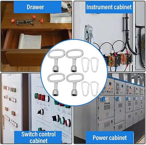 4 Pezzi Chiavi Triangolari Universali in Metallo Chiavi a Bussola Triangolare con Moschettone, Resistenti e Durevoli, per Cassette Elettriche, Gas, Acqua e Contatore di Corrente