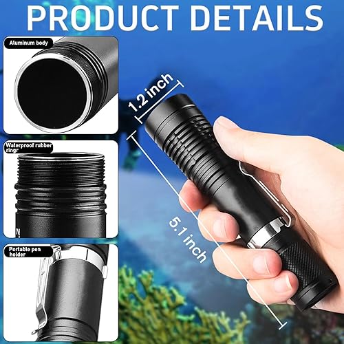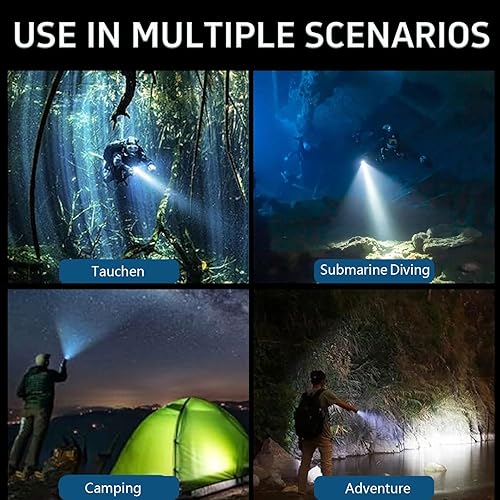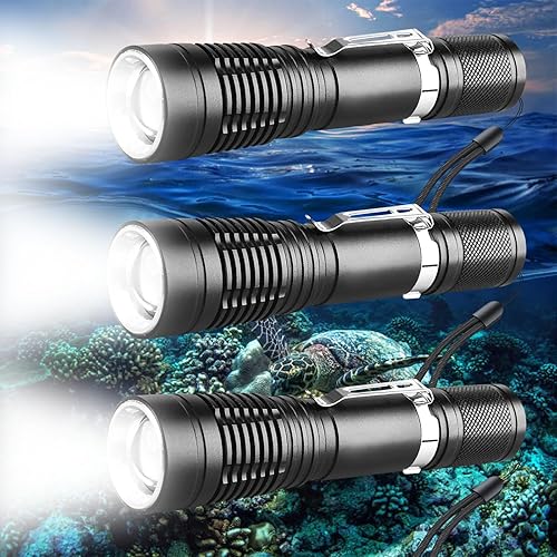 Immersione Torcia Elettrica Professionale Luminosa Impermeabile Sicurezza Subacquea Lampada 3 Modalità Torcia subacquea per Immersioni Nuoto Escursioni Pesca (1 Pack)