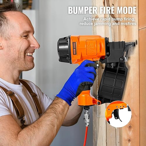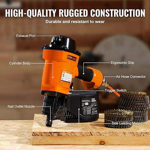 VEVOR Chiodatrice Pneumatica a Spirale, 45-70 mm, Chiodatrice Pneumatica a Spirale 15°, MCN70, 70-120 PSI, Testa del Chiodo Φ5,5 - Φ7 mm, Pistola Sparachiodi per Rivestimenti Faidate Legno Recinzioni