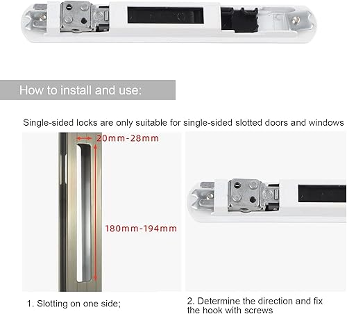 Blocco Baia Vetro Scorrevole Baia,Akozon 7.8x1.1 pollici Acciaio Inox Serratura per Porta Scorrevole in vetro semplice Serratura per porta patio con serratura a gancio per finestra