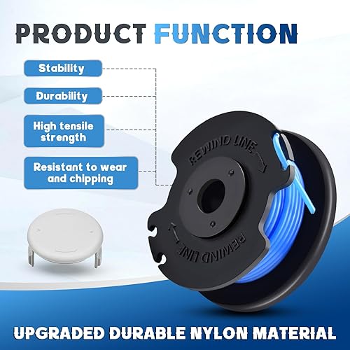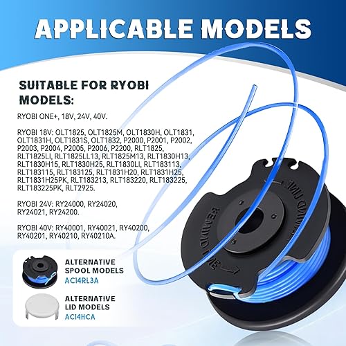 Bobine Filo Tagliabordi compatibile con Ryobi RAC124 AC14RL3A, bobina di filo di ricambio per Ryobi One+ 18 V, 24 V, 40 V, Ø 1,65 mm 3,4 m,con copertura per bobina AC14HCA(6 bobine+2 tappo)