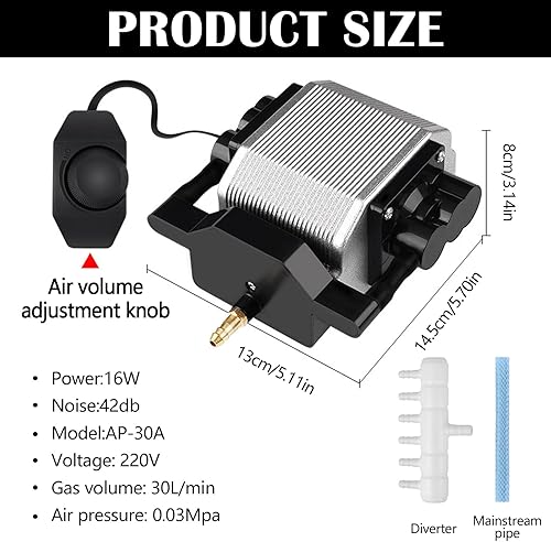 Air Assist, Pompa Laser Air Assist per Incisore Laser 30L/min Set Pompa Aria Laser Flusso Aria Regolabile Accessori Laser per Taglio Laser Incisione Laser Basso Rumore 16W 220V
