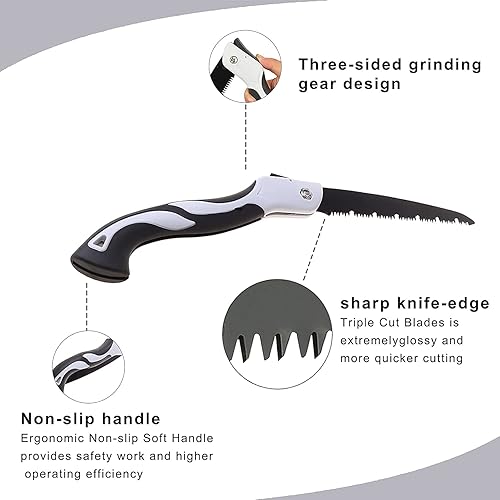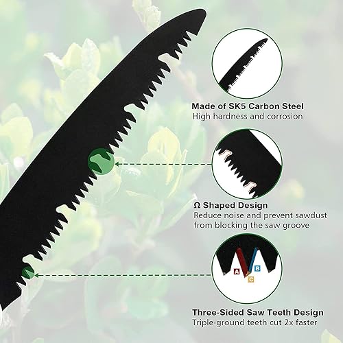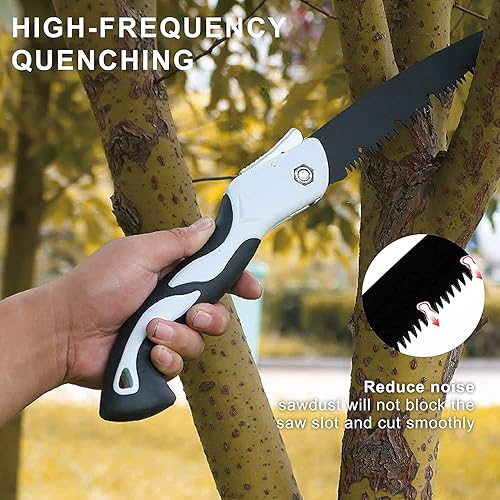 Sega a mano pieghevole, robusta SK5 in acciaio al carbonio ad alto tenore di carbonio, sega per potatura di alta qualità, con chiusura sicura, impugnatura morbida per campeggio, giardinaggio