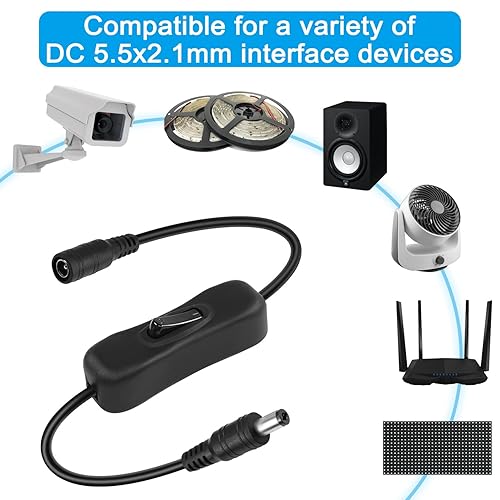 DC5521 - Cavo di prolunga per interruttore in linea, 4 pezzi, DC 5,5 mm x 2,1 mm, da maschio a femmina, con interruttore on/off 304, per telecamere IP wireless di sorveglianza CCTV, ecc