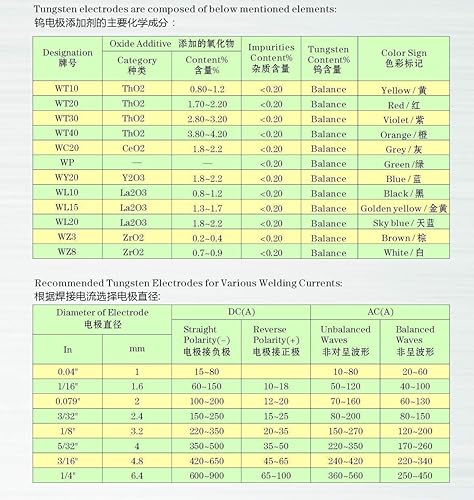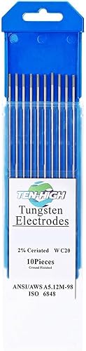 TEN-HIGH Elettrodi in tungsteno TIG, 2% di cerium, WC20 (grigio), 2,4 mm x 150 mm di 10 pezzi per confezione