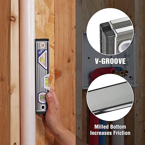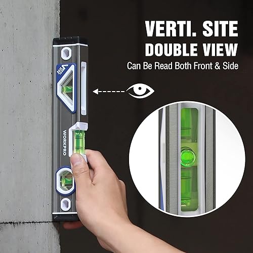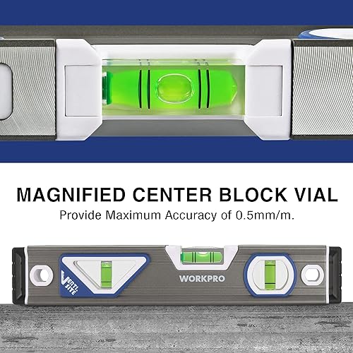 WORKPRO Livella a Bolla da 254mm, Livella con Bolla Misurazione Orizzontale/Verticale/45 °, Leggibile Frontale e Laterale, Ottimo per Costruttori Professionisti e Fai-da-te