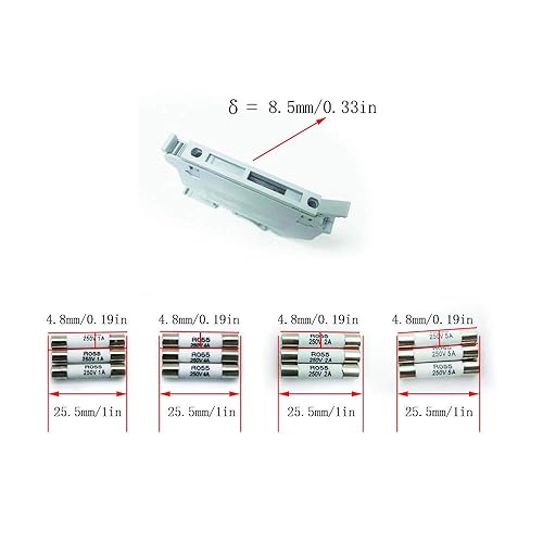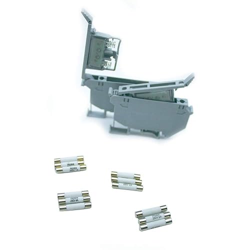 Portafusibile Barra Din, Her Kindness 2 Pezzi Morsetto Porta Fusibili Din, Supporto Porta Fusibili Fotovoltaico, Montaggio su Binario di Sicurezza Fine, Morsetti Base 24 V DC, con 12 Fusibili