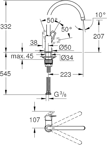 Grohe GRO-31368001 31368001-BauLoop Monomando de fregadero 1/2', Nero, hoher Auslauf