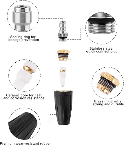 Ugello Turbo Idropulitrice con Connettori Rapidi in Acciaio Inossidabile da 1/4'' 3/8'' 4000PSI Max.5000PSI 4.0GPM Ugello Turbo Rotante per la Pulizia Mattoni Cemento Giardino