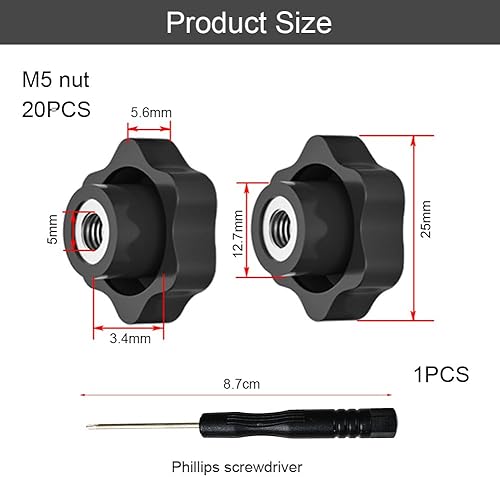 Manopole a Stella M5,Manopola di Serraggio con Filettatura Zigrinata,Impugnatura a Stella,Manopola Serraggio,Testa a Stella con Foro Passante Macchina Utensile,Stella Testa Serraggio Dadi,32mm,20pcs