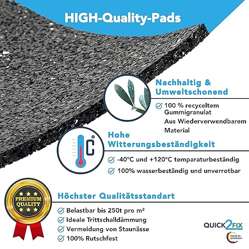 48 pezzi di cuscinetti per terrazze (cuscinetti in gomma 195 x 195 x 3,0 mm) per una costruzione stabile del terrazzo. Made in Germany