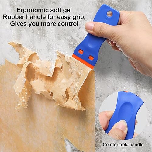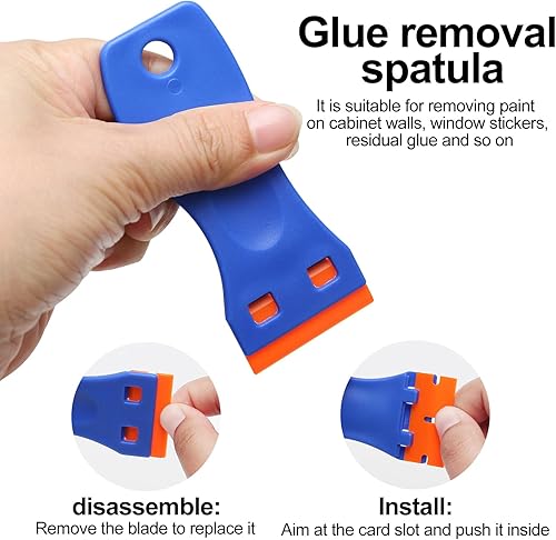 Rimuovi Silicone, 3 Pezzi Raschietto Vetro Con 30 Lame in Plastica Sostituibili, Spatole per Silicone Per Rimuovere Etichette, Vetrofanie, Vernice