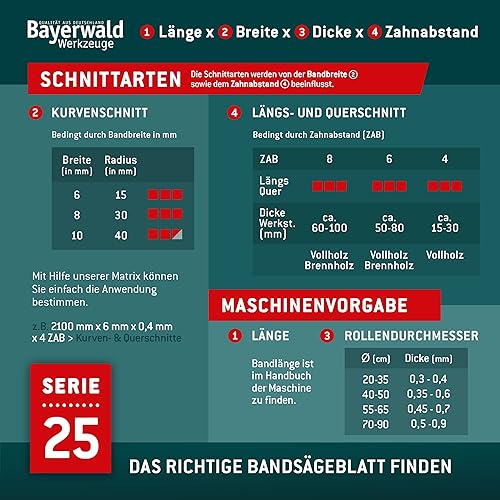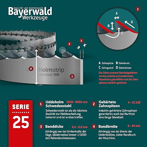 Bayerwald Uddeholm - Lama per sega a nastro temprata, 3500 x 25 x 0,6 x 8, per tutti i tipi di legno/sega a nastro adatto per Bernardo e molto altro ancora.