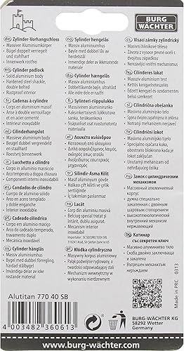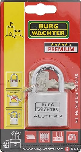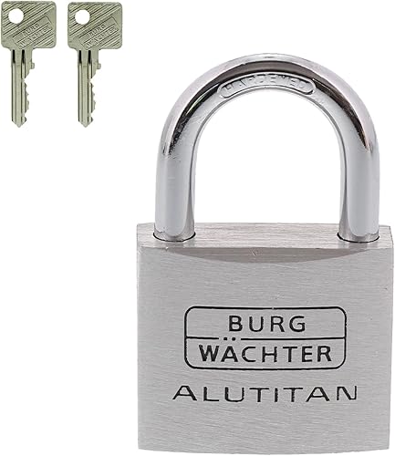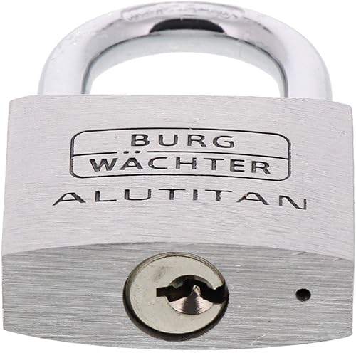 Lucchetto Burg-Wächter, lucchetto con chiave, spessore del gancio 3,7 mm, solida serratura in alluminio, interno antiruggine, temprato, titanio 770 HB 20 26 SB