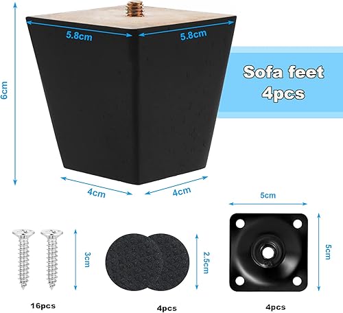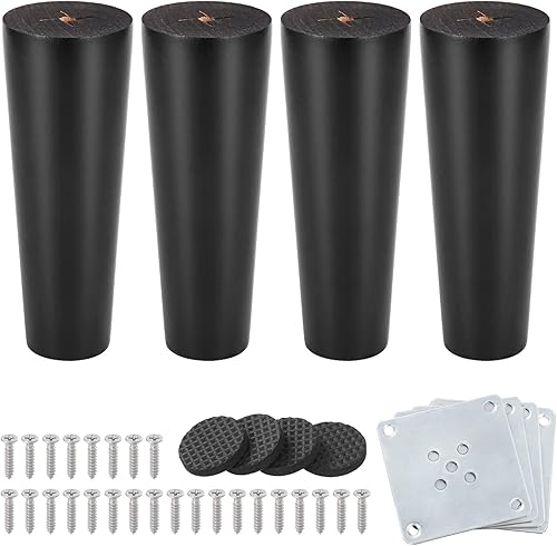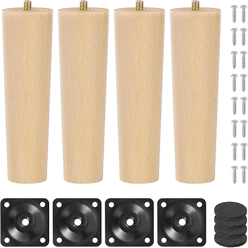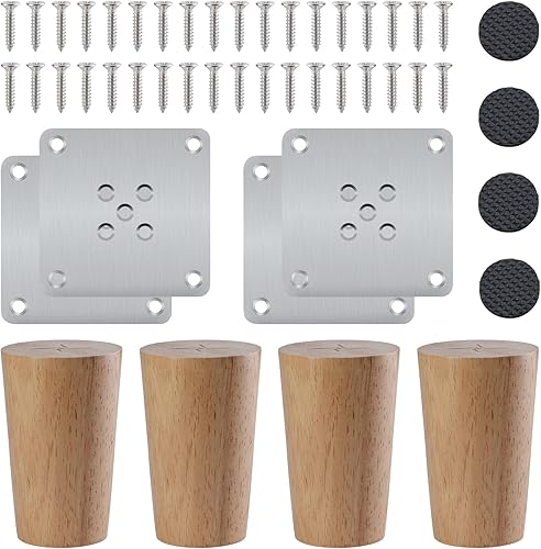 4 gambe per mobili in legno massello, dritte da 10 cm, piedini di ricambio per mobili con piastra di montaggio, viti e tappetini antiscivolo