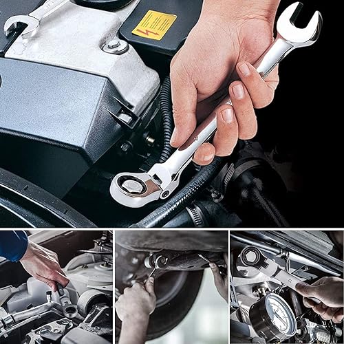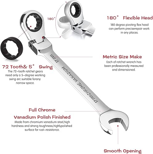 Set di Chiavi e Cricchetto da 6 Pezzi Chiavi Combinate a Cricchetto 72 denti Metrico 8/10/12/13/14/17 mm, Chiave ad Azione Acciaio al Cromo Vanadio Cr-V con Supporto per Trasporto