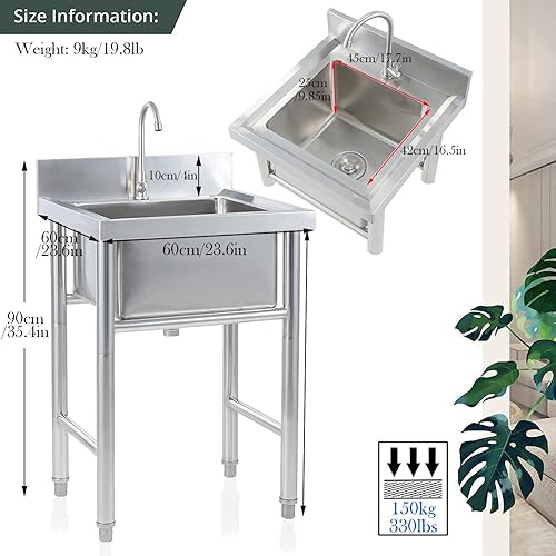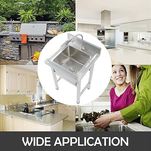 Kitchen Sinks Lavello Cucina 1 Vasca Lavello da Industriale in Acciaio Inox Lavandino da Esterno Lavello Commerciale per Interni Esterni Ristoranti Bagni Garage Magazzini Spessore 1mm