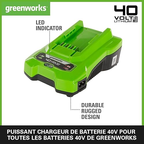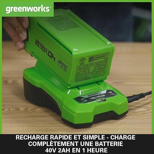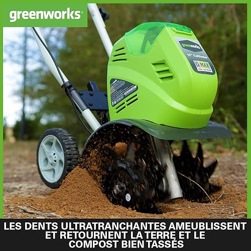 Greenworks Motozappa a batteria G40TL, Li-Ion 40V con 4 lame appositamente temprate profondità di lavoro 20 cm & Caricabatteria rapido G40C