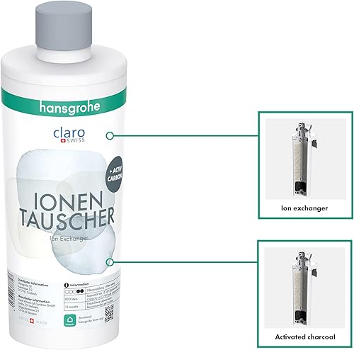 hansgrohe Filtro sostitutivo agli ioni e ai carboni attivi, cartuccia filtrante per Aqittura M91, filtro dell'acqua, filtro di ricambio, capacità di filtraggio 800 litri a 15° dH