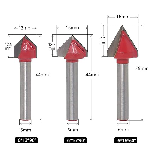 3 frese per scanalatura, dritte a V, 6 mm, carburo di tungsteno, frese per taglierina a legno, 3D a V, fresa per incidere CNC per la lavorazione del legno, 60 ° e 90 °
