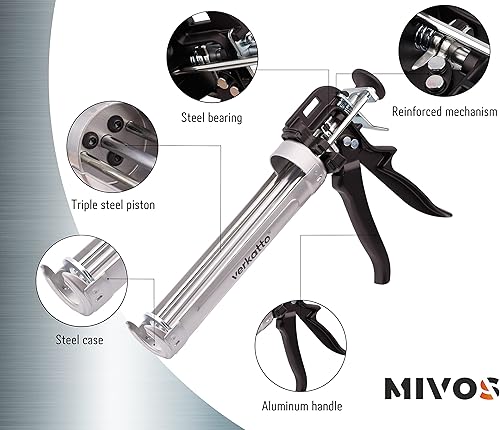Pistola professionale per cartuccia per tutte le cartucce di tenuta e colla da 310 ml, rapporto di spinta di 26:1, pressa rinforzata con telaio girevole e pistone con tre aste