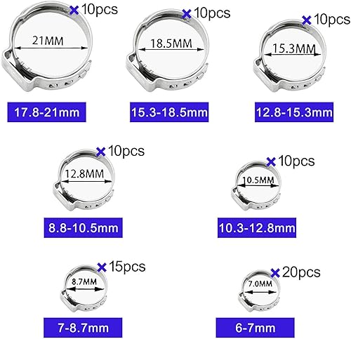 ALLNICE - Fascette per tubo a orecchio singolo, in acciaio inox 304, regolabili, set assortito per applicazioni idrauliche e di approvvigionamento idrico