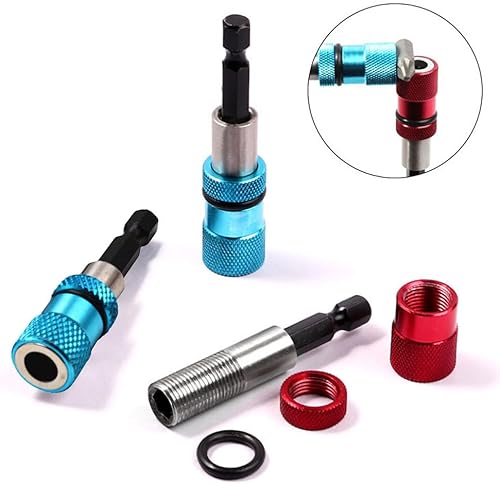 inserti per avvitatore professionale, set di 2 pezzi per avvitatore per cartongesso, portabit magnetico, bit di rigatura a sgancio rapido con gambo esagonale da 1/4 di pollice (rosso + blu)