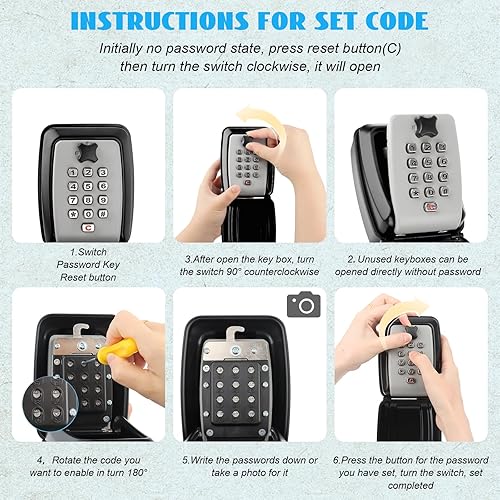 Cassetta Sicurezza Chiavi, Cassaforte Portachiavi con Codice 12 Cifre, Cassetta Sicurezza Chiavi, Combinazione Chiavi Impermeabile per Casa, Garage, Ufficio, Esterno (Noir)