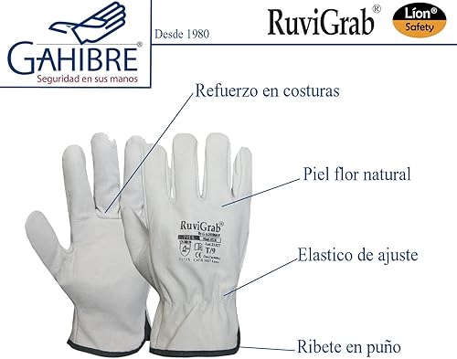 Guanto da Lavoro in Pelle di Fiore Naturale - Guanti da Giardinaggio - Pacco da 12