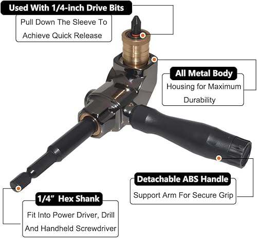 Attacco per trapano ad angolo retto, adattatore per trapano a 90 gradi con manico staccabile, adattatore angolare per punte da trapano durevole e facile da usare