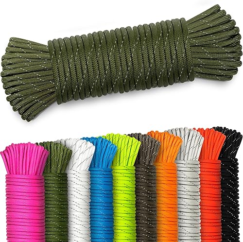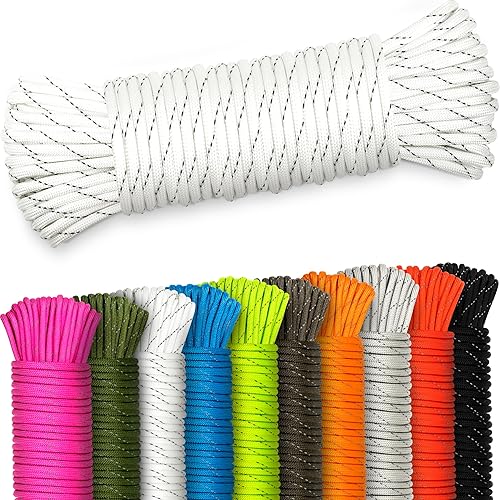 5,10 o 15m Filo Paracord 550 riflettente da 4mm | Filo Paracord Riflettente 7 Fili Interni | Equipaggiamento Outdoor (bianco riflettente, 15 metri)