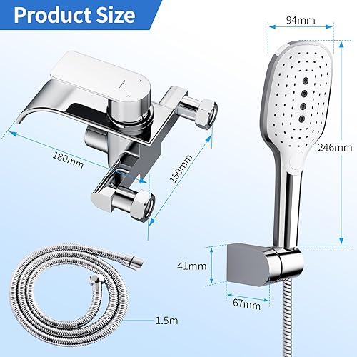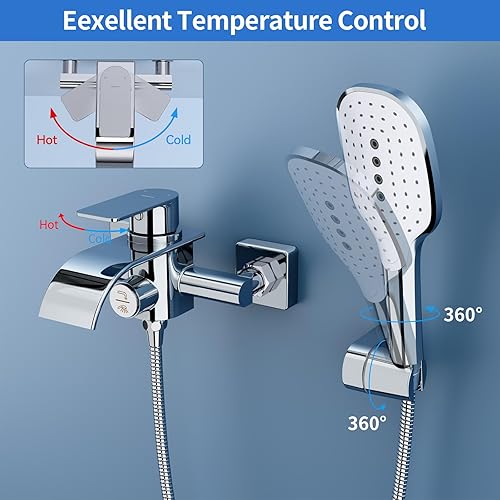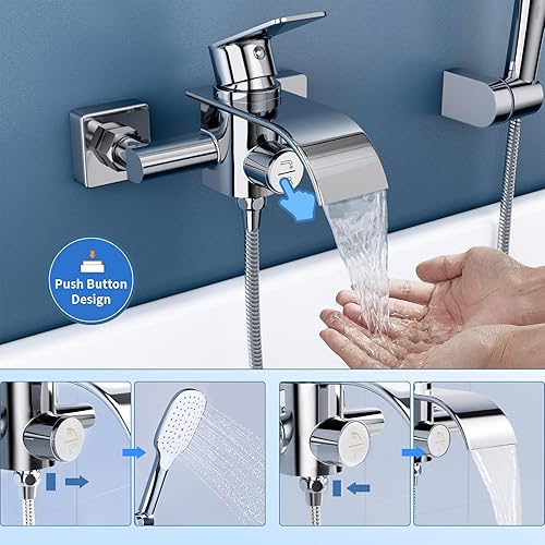 Rubinetto per vasca da bagno con doccetta a mano, rubinetto a cascata, miscelatore in ottone con 3 funzioni, rubinetto con una sola mano, vasca da bagno con interruttore a pressione