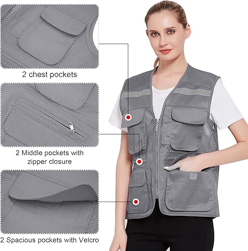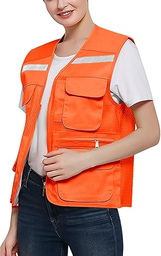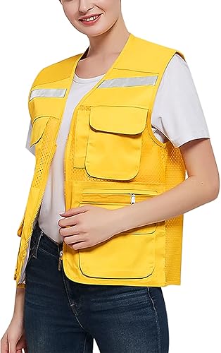 Gilet di Sicurezza Riflettente Unisex Gilet da Lavoro in Rete ad Alta Visibilità Gilet Esecutivo Multitasche Fluorescente Scollo a V con Cerniera, Costruzione/Volontario/Lavori all'aperto, S-XL