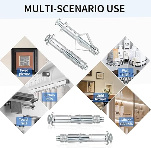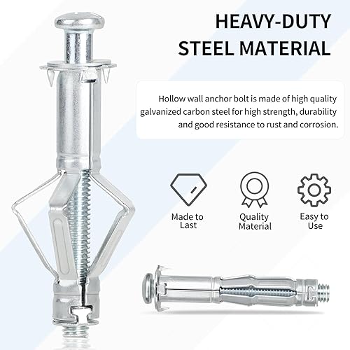 30 tasselli per cavità, M8 x 65 mm, zincati, tasselli per pareti cave, tasselli di espansione con vite, tasselli autofilettanti in cartongesso, per fissaggio in cartongesso