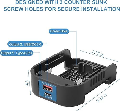 2 Pack adattatore per batteria, caricatore USB compatibile con la batteria Bosch Professional 18V Adattatore doppio caricatore USB per telefono con ricarica rapida Type-C (solo adattatore)