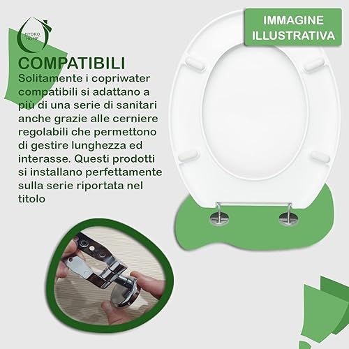 Copriwater Dolomite Fleo Compatibile, Tavoletta Wc In Plastica Termoindurente Con Cerniere Regolabili,Asse Wc Colore Bianco MADE IN ITALY