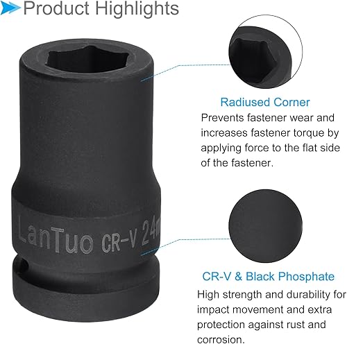 Bussola Impatto 6 Punti, Presa 24 Mm Attacco 1', Presa Metrica Standard Design Angolo Raggiato Cr-Mo - (Applicazioni:Riparazioni Automobilistiche, Manifattura)