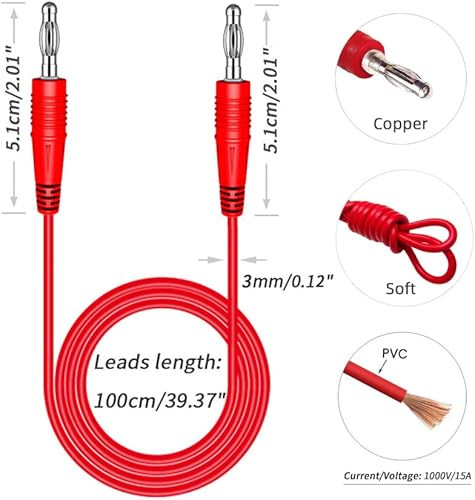 2Pcs P1041 4mm Spina a Banana a Spina a Banana Cavo di Prova multimetro prolunga Test elettronico - Rosso + Nero