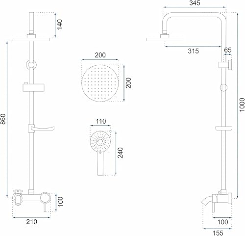 Colonna Doccia JACK GOLD SET BAGNO Sistema Doccia in Ottone per Bagno (Oro)