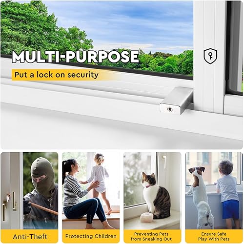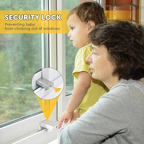 4 Pezzi Chiusura Finestra Scorrevole Regolabile Serratura Finestra Scorrevole Serratura di Sicurezza per Bambini con Chiave Finestra Scorrevole Stop Argento