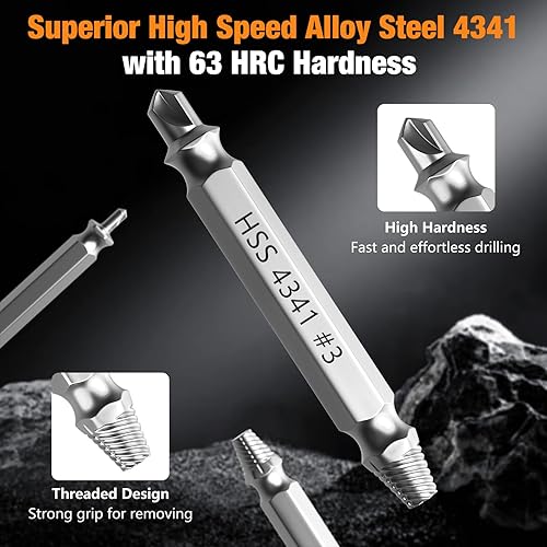 Nuovoware Set di estrattori per viti danneggiate, 6 PCS strumenti per viti spanate, dadi e bulloni, kit di estrattori multiuso HSS 4341, ideale per il fai da te e le riparazioni domestiche, Argento