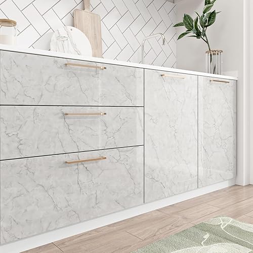 HotDecor Pellicola Adesiva Per Mobili Carta Da Parati Adesiva Marmo Carta Adesiva Per Mobili Piano Di Lavoro Cucina Carta Adesiva Per Pareti Grigio Bianco Adesivi Per Mobili Decorativi 60cm x 300cm