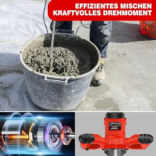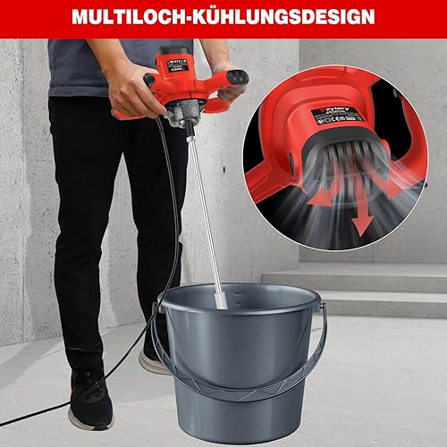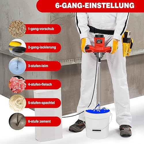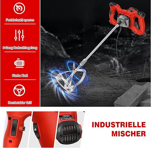 Agitatore, miscelatore per pittura e malta, 2600 W, mescolatore manuale per malta per calcestruzzo, trasmissione a 6 marce 0-1700 giri/min, filettatura M14, agitatore a onda, Ø 120 mm, malta per